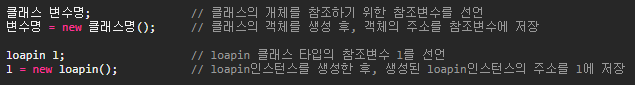 - 클래스로부터 객체를 만드는 과정을 클래스의 인스턴스화(instantiate)
