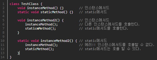 * 메서드 앞에 static 이 없으면 인스턴스 메서드