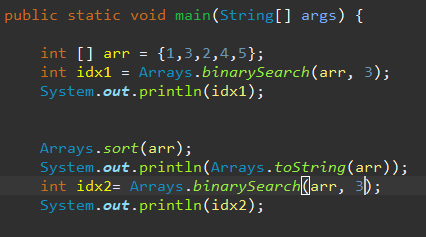 - binarySearch() : 배열에 저장된 요소를 검색할 때