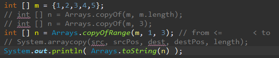 - copyofRange() : 배열 일부를 복사